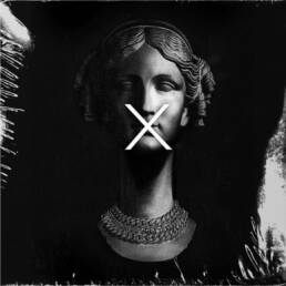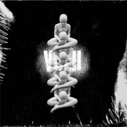 Close-up of two hands holding a small white card with minimalist black text reading ‘LIK–’ against a dark background.